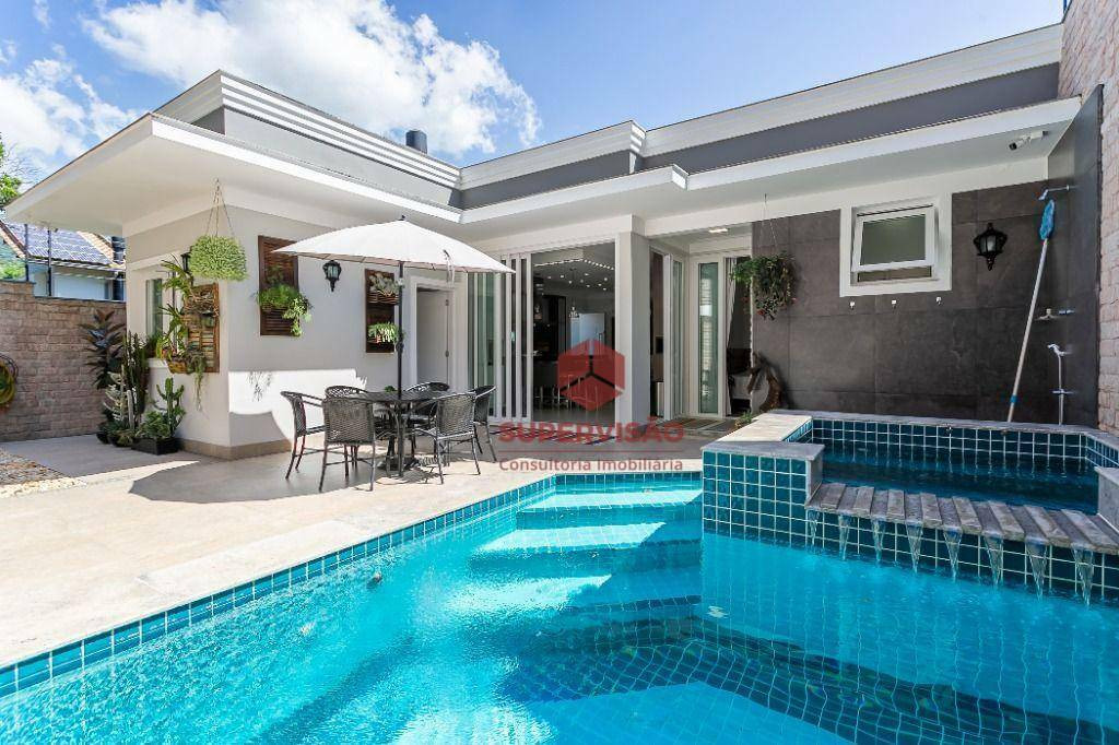Casa à venda na Cachoeira do Bom Jesus, Florianópolis/SC.Descubra a elegância e o conforto desta casa de 2 pavimentos, localizada em um condomínio exclusivo com apenas 12 unidades na charmosa Cachoeira do Bom Jesus, a apenas 400 metros da praia. Com um terreno generoso de 500m² ao lado de uma área de preservação, esta propriedade oferece uma posição solar privilegiada.A casa possui 3 dormitórios, incluindo 1 suíte e 1 demi-suíte, proporcionando espaço e privacidade para toda a família. O living é integrado à cozinha e ao espaço gourmet, ideal para recepções e momentos de convivência. O quintal conta com uma piscina e espera para aquecimento, perfeito para os dias quentes de verão.No pavimento superior, a sala íntima e a ampla varanda em L oferecem um espaço adicional para relaxar e apreciar a vista. As esquadrias amplas, as persianas automatizadas e as telas mosquiteiras nos dormitórios garantem conforto e praticidade. O ar-condicionado está instalado na área íntima e os móveis planejados estão inclusos.O condomínio dispõe de cabeamento subterrâneo, proporcionando um visual mais limpo e moderno. Além disso, é um condomínio fechado, garantindo privacidade e exclusividade para seus moradores.A Supervisão tem uma equipe de especialistas prontos para lhe atender. Agende uma visita!! WhatsApp (48) 99925-6564 ou telefone (48) 3282-5544.Valor sujeito a alteração sem aviso prévio.