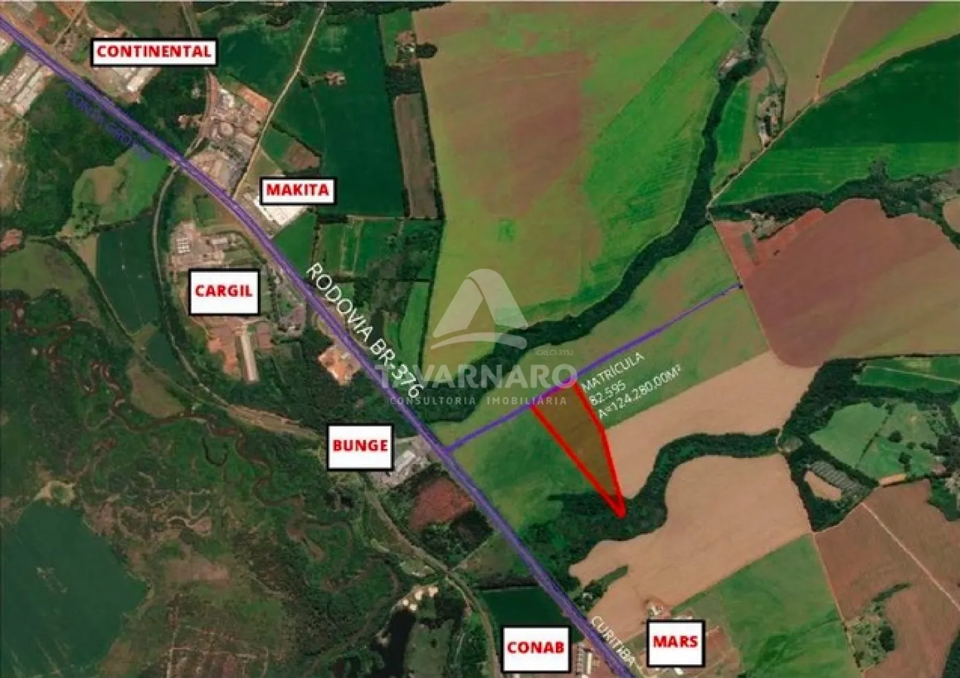 Medindo 133.042 m2. Possibilidade de venda de fração, a partir de 30.000 m2. ZI - Taxa de ocupação de 50% Localizada na BR 376 - KM 510, em frente a indústria MARS, entre a CARGIL e a CONAB, atrás da Cotrasa Veículos, Ideal para logística, indústrias, cd?s, galpões e transportadoras. Nos fundos há um terminal ferrroviário para as indústrias que necessitem escoar seus produtos também por vias férreas.. ref. 11285 atualizado em 06/12.
