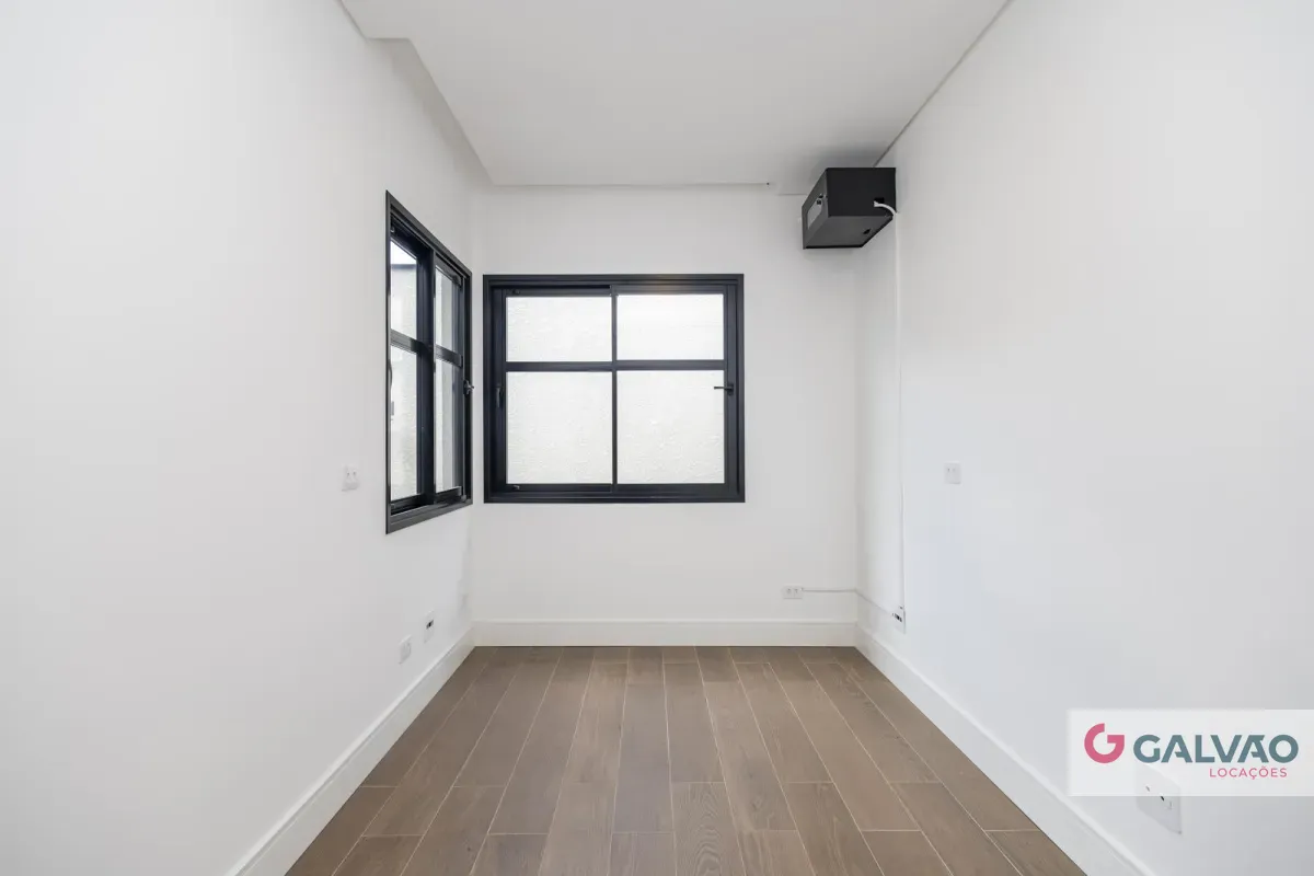 Ampla sala para 04 ambientes, equipada com ar-condicionado e saída para amplo jardim lateral, proporcionando boa iluminação natural;