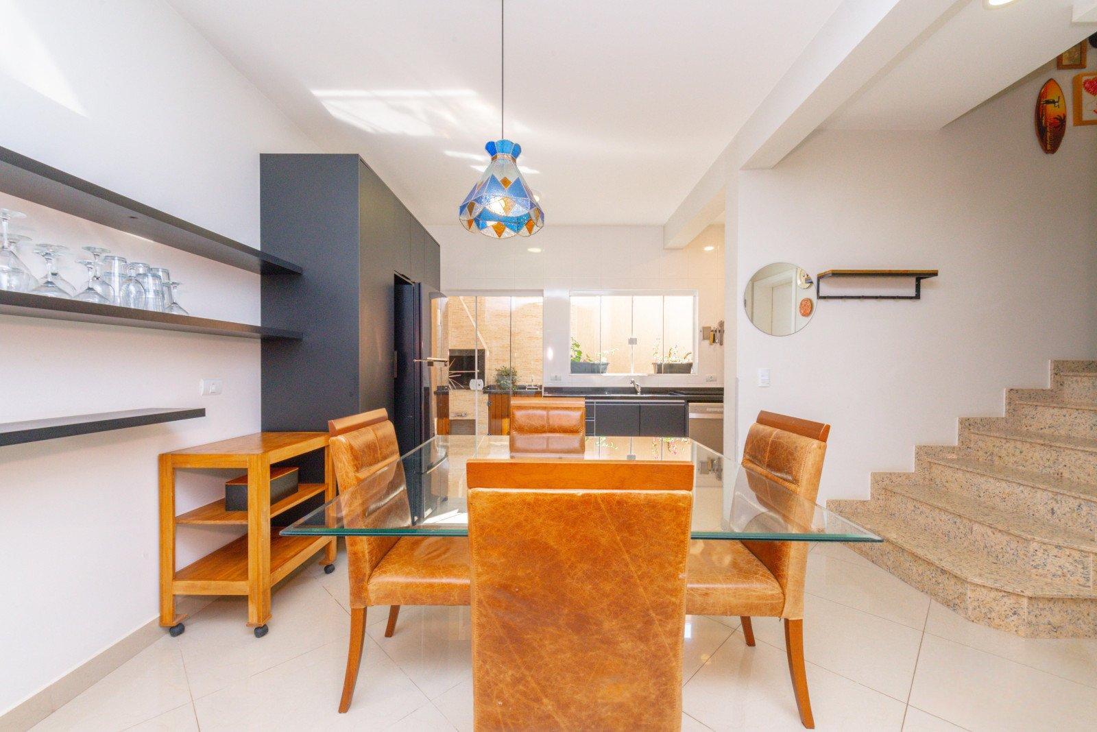 Explore o Conforto e a Elegância neste Sobrado em Condomínio Próximo à BR-277: Características do Sobrado: Ambientes Planejados: Este sobrado foi projetado com móveis planejados em todos os cômodos, garantindo organização e funcionalidade em toda a residência. Acabamentos de alta qualidade: Com iluminação cuidadosamente selecionada, porcelanato elegante e laminado. Térreo: Uma ampla sala de estar para 2 ambientes oferece um espaço convidativo para relaxar e receber visitas. A cozinha moderna, equipada com lavanderia e área de churrasqueira, oferece praticidade e conforto para o dia a dia. Primeiro Andar: Dois quartos, ambas suítes, com sacada privativa, criam refúgios de tranquilidade e privacidade para seus ocupantes. Segundo Andar: Uma terceira suíte completa com sacada. Garagem para 1 carro